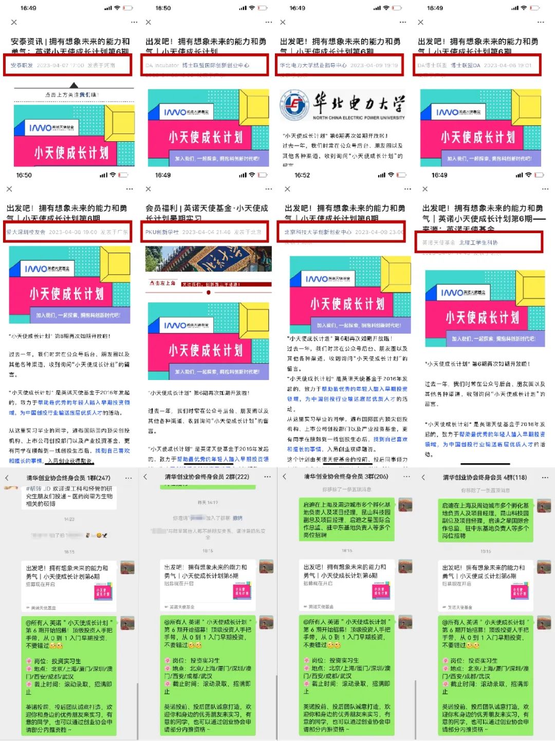 自实习招募发起,已有50+位同学报名,9所顶级高校,清华大学、北京大学、北京理工大学、北京科技大学、上海交通大学、华北电力大学、英诺爱丁堡大学进行转发或群推,期待更多优秀的你们投出简历,加入小天使,迈出成为天使投资人的第一步!