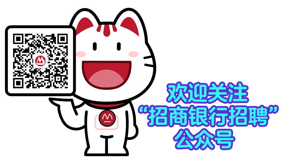扫描下方二维码,关注“招商银行招聘”微信公众号平台,获取最新的校园招聘内容和干货满满的信息分享,点击“招了-校园招聘”,申请感兴趣的职位,投递简历!