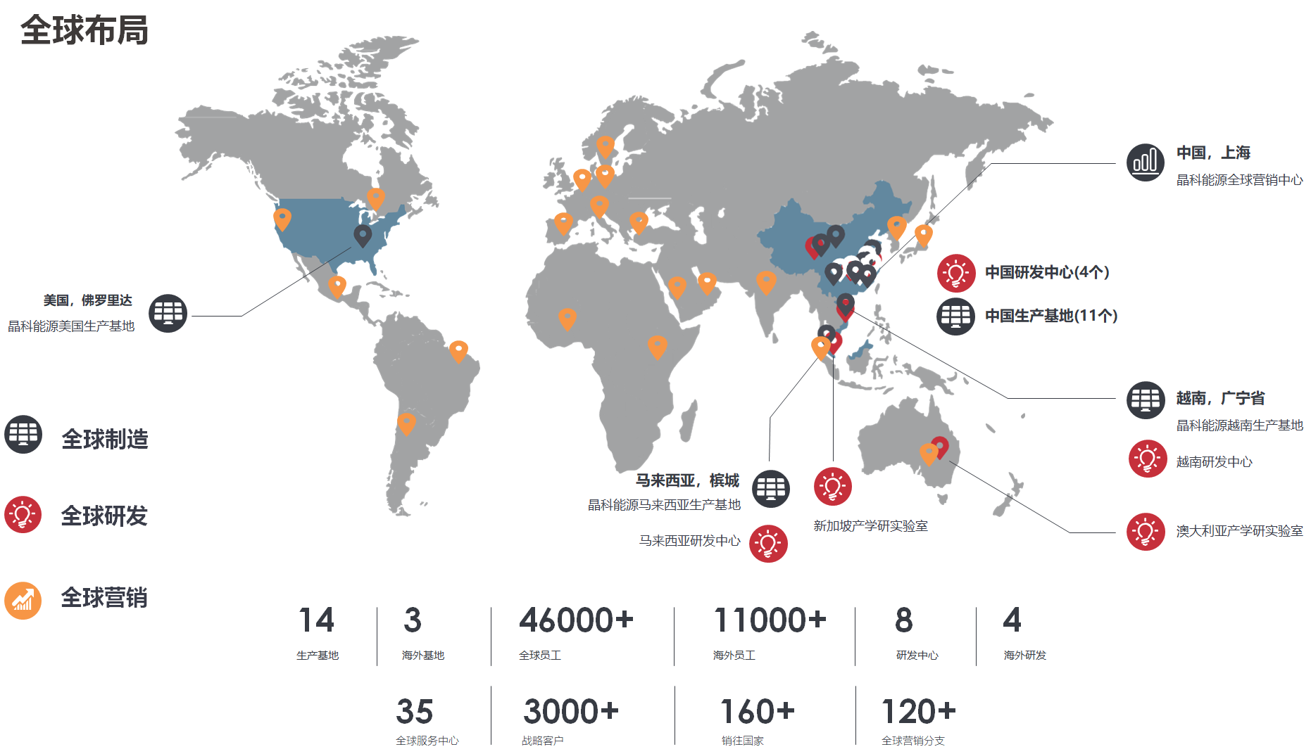 企业。秉承“改变能源结构,承担未来责任”的使命,公司战略性布局光伏产业链核心环节,聚焦光伏产品一体化研发制造和清洁能源整体解决方案提供,销量领跑全球主流光伏市场。