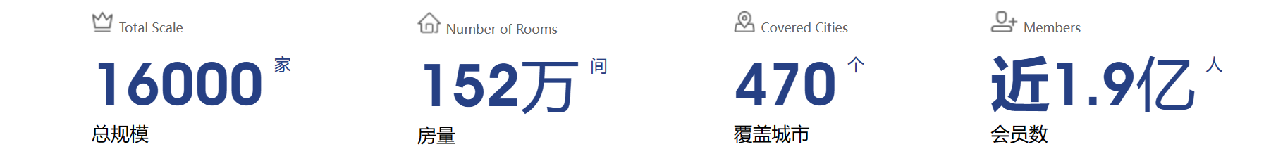 锦江国际集团的酒店规模位列全国第一,全球第二。截至 2023 年 6 月底,锦江酒店拥有已签约酒店规模数超16000 家,超152万间客房,覆盖全球470多个城市,拥有近1.9亿会员。