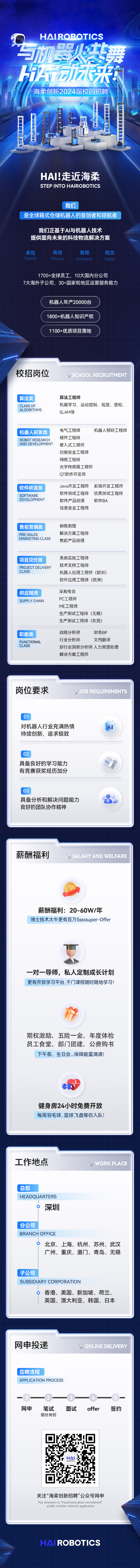 深圳市海柔创新科技有限公司,公司成立于2016年,我们是全球箱式仓储机器人的首创者和领航者。全球员工1700+,10大国内分公司,7大海外子公司,30+国家和地区运营服务能力。我们正基于AI与机器人技术,提供面向未来的科技物流解决方案,柔性、高效、智能、稳定。我们,是全球箱式仓储机器人的首创者和领航者。全球员工1700+,10大国内分公司,7大海外子公司,30+国家和地区运营服务能力,机器人年产20000台、全球1100+优质项目落地。