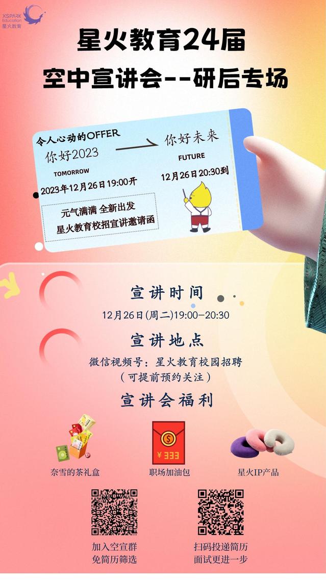 【宣讲链接】:微信视频号:星火教育校园招聘