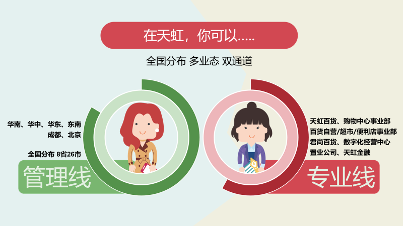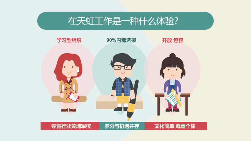 2、在天虹,你有很多学习的机会,我们也有支持你学习的平台、资源、体系,助力你的成长