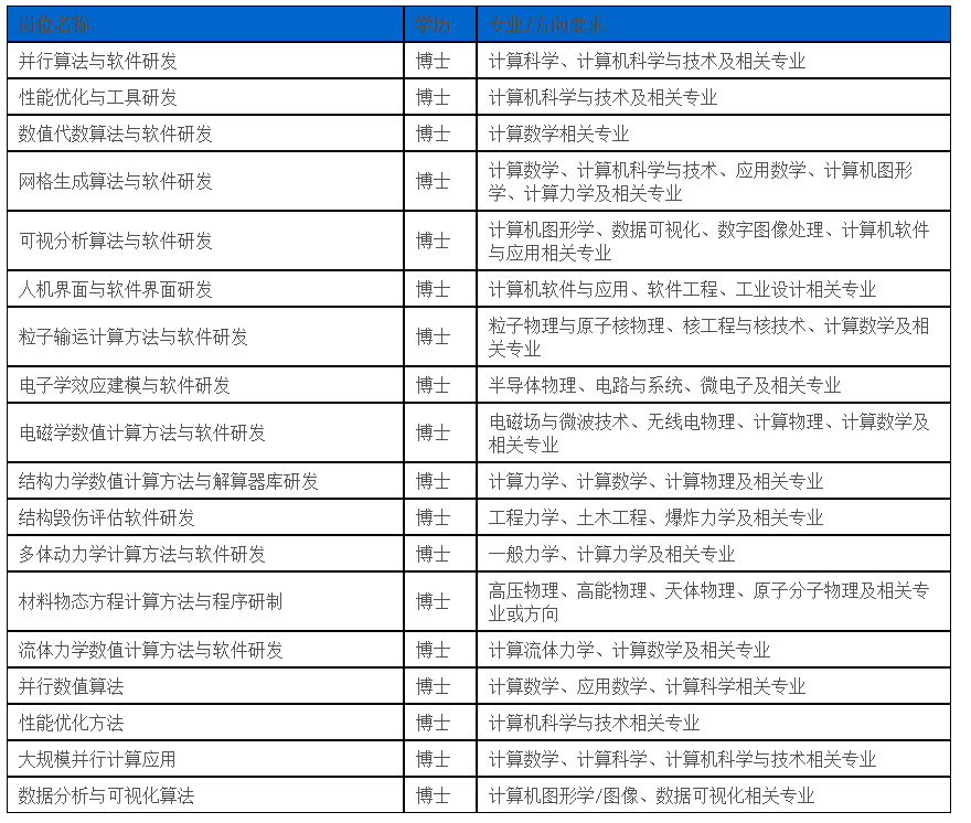 中物院高性能数值模拟软件中心2021校园招聘