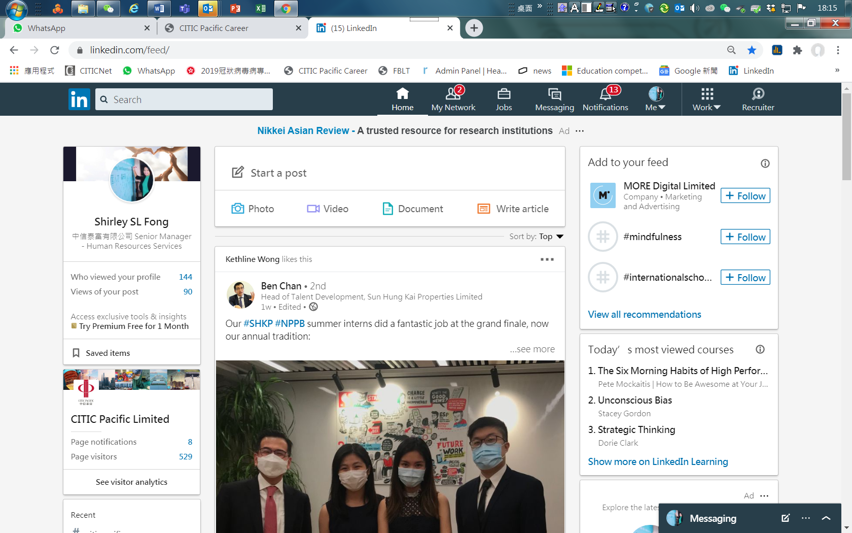 A team player with strong communication skills and excellent command of English and Chinese including Putonghua