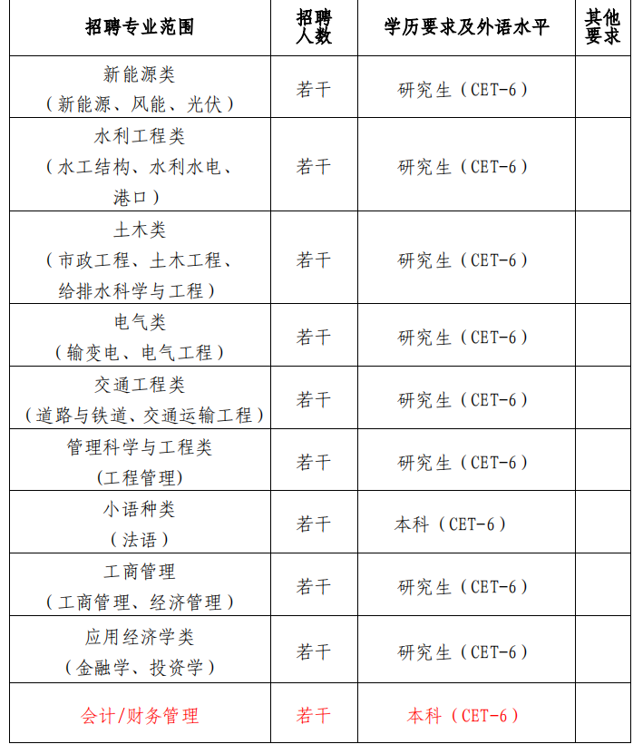 根据公司工作需要,经研究,决定面向全国高等院校招聘各类专业高等院校毕业生(国内高校+留学归国+来华留学)。现将有关事宜公告如下: