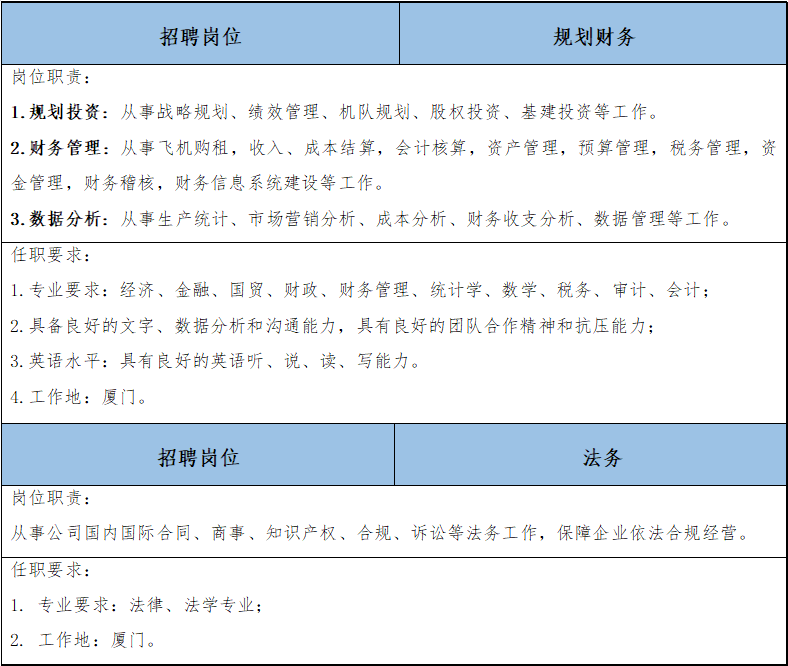 应聘人员提交的个人材料、体检报告及三方协议相关内容须真实准确,提交资料不实者,厦门航空有权取消应聘资格或终止相关协议。