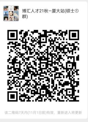 由人力资源和社会保障部全国人才流动中心指导,中全人才服务中心、博汇人力资源服务(北京)有限公司共同主办的“高层次人才洽谈会(2021年度)秋季巡回面试会——厦门大学硕博专场”将于2021年11月8日在厦门大学举办。