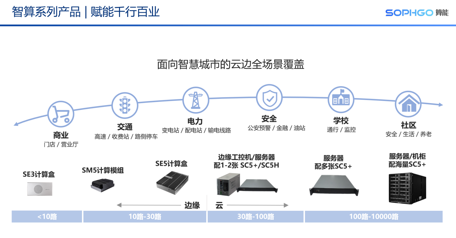 算能是一家拥有强劲技术实力却又充满创业激情的芯片公司,我们承续了比特大陆在AI领域沉淀多年的技术、专利、产品和客户。公司专注于AI芯片、RISC-V CPU等算力产品的研发和销售,产品已在智能视频、智能安防、智能交通、智能电力、智能医疗、智能油气、智能语义、智能推荐、城市大脑等场景获得了广泛应用。
