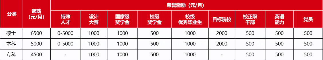 ⑦各类荣誉激励同起薪合并后作为校招生固薪标准