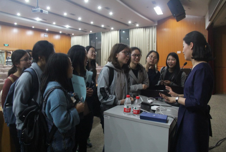 在讲座中,主讲人Elaine老师简明扼要指出:“形象是一种资产,是一个人的软实力,应该好好管理”,并通过视频向同学们展示了形象的重要性。形象资产管理需要从视觉形象、社交形象、精神形象三个方面进行管理,通过对色彩风格、服饰搭配、仪态姿势、行为习惯等方面的改造,使着装打扮更加得体、言谈举止恰到好处、谈吐修养从容自信。对于如何提升职场气质,赵老师提出四大法宝:服装、微笑、礼仪和语言。关于职场衣着,赵老师提出了“TPO”原则,即根据时间(time)、场合(place)、目的(object)不同而变化,争取整洁大方、合适得体。Elaine老师还强调了微笑的重要性,介绍了握手礼仪、递送名片礼仪、介绍礼仪等,详细阐明具体得当的做法。在讲座的问答环节,同学们更是踊跃参与,提出心中疑惑。针对同学们提出的种种具体问题,赵老师一一做出了精彩的回答。