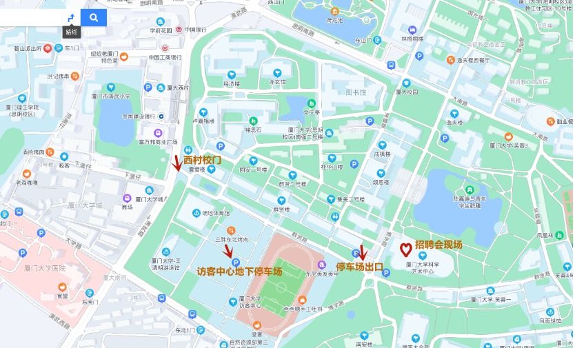 所有参加思明校区招聘活动的小型车辆(7座以下)不得进校,应遵照访客车辆的行车路线要求,在南普陀地下停车场(距离较近)停好车辆后下车,统一从靠近南普陀的大南校门步行入校。如南普陀地下停车场车位已满,可停至访客中心停车场后再步行至大南校门。