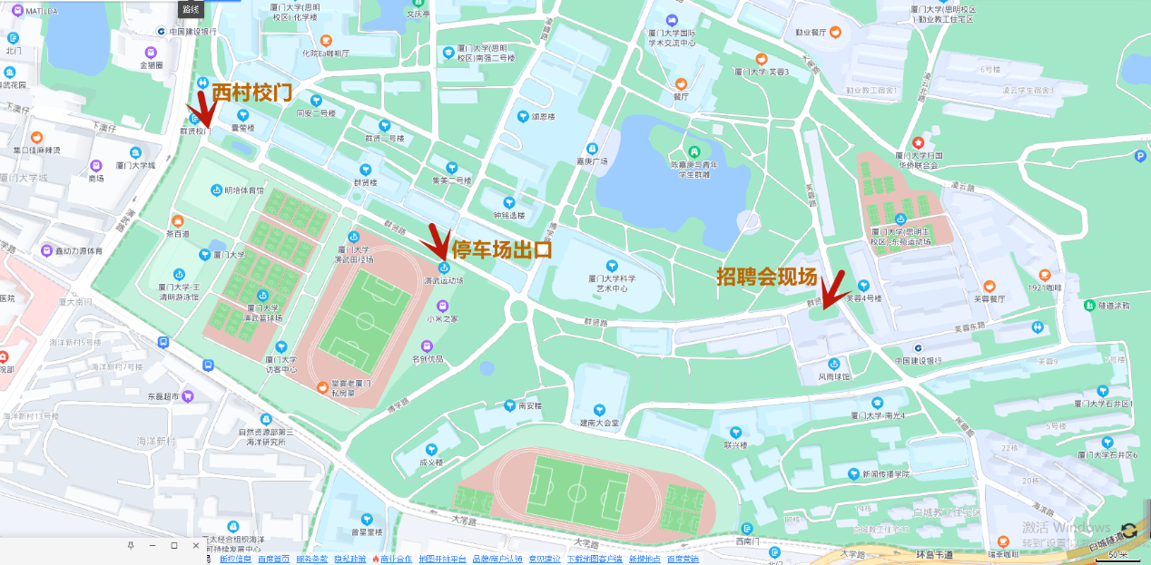 所有进校参加思明校区招聘活动的车辆应服从校内交通规定,停至访客中心停车场,从西村校门或访客中心进校;步行人员统一从西村校门进校。